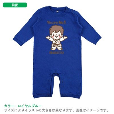 BabyChips ちいさな柔道選手(白:男の子)(名入れ長袖ベビーロンパース) 70 ロイヤルブルー