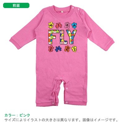 BabyChips パズル(名入れ長袖ベビーロンパース) 70 ピンク