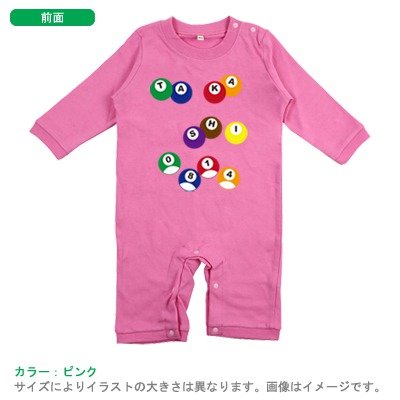 BabyChips ビリヤード(名入れ長袖ベビーロンパース) 80 ピンク