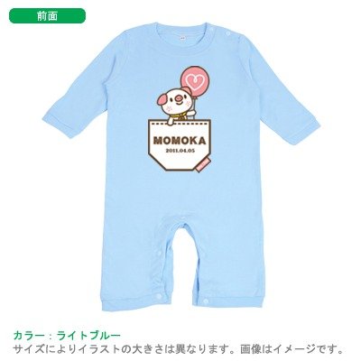 BabyChips ポケットアニマル(ぶた)(名入れ長袖ベビーロンパース) 80 ライトブルー