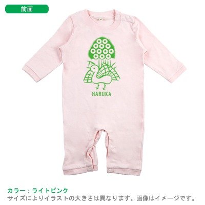 BabyChips 麻雀(1色)(名入れ長袖ベビーロンパース) 70 ライトピンク