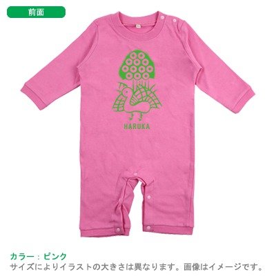 BabyChips 麻雀(1色)(名入れ長袖ベビーロンパース) 80 ピンク