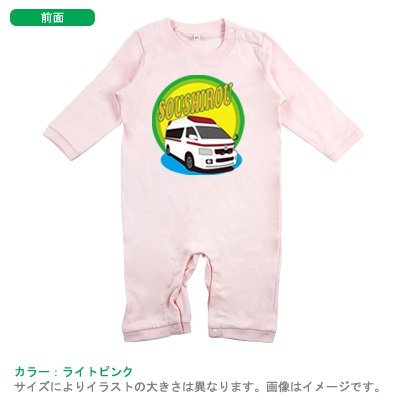 BabyChips 救急車(名入れ長袖ベビーロンパース) 80 ライトピンク