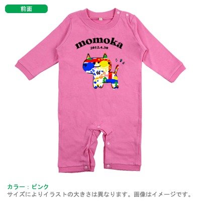 BabyChips ニジイロネコ(名入れ長袖ベビーロンパース) 80 ピンク