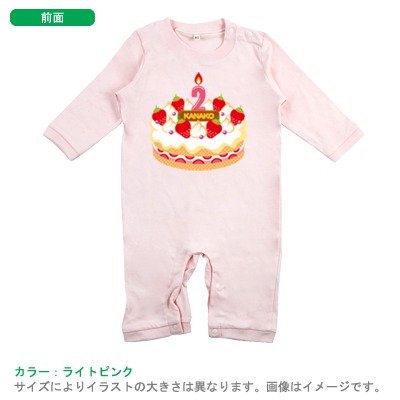BabyChips Birthday Cake2(名入れ長袖ベビーロンパース) 80 ライトピンク