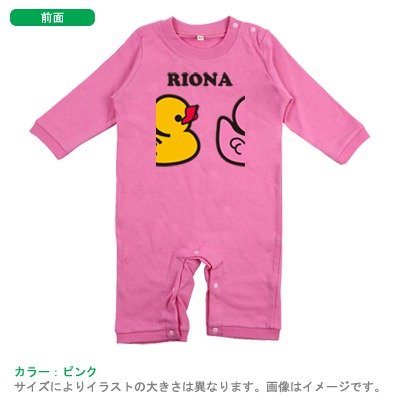 BabyChips あひる3(名入れ長袖ベビーロンパース) 80 ピンク