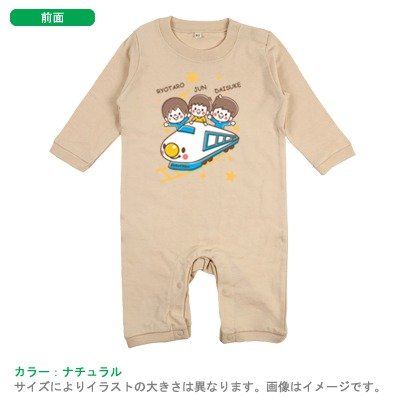BabyChips 出発進行~ (名入れ長袖ベビーロンパース) 70 ナチュラル