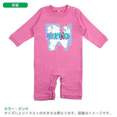 BabyChips パズル(歯)(名入れ長袖ベビーロンパース) 80 ピンク