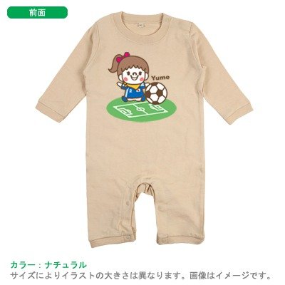 BabyChips ちいさなサッカー選手(女の子)(名入れ長袖ベビーロンパース) 70 ナチュラル