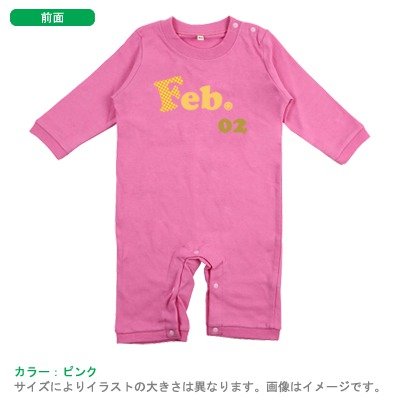BabyChips February(名入れ長袖ベビーロンパース) 80 ピンク