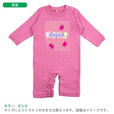 BabyChips パズル(ロイヤルブルー)(名入れ長袖ベビーロンパース) 80 ピンク