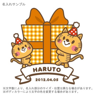 大きなプレゼントを運んでいるネコさん。出産お祝いにどうぞ