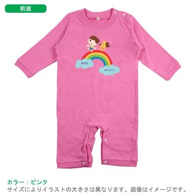 BabyChips にじ~おとこのこ(名入れ長袖ベビーロンパース) 80 ピンク