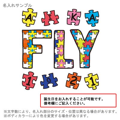 名前と誕生日をパズルのピースに、FLYのメッセージと共にプリントしました^^