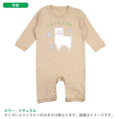 BabyChips アルパカ_青(名入れ長袖ベビーロンパース) 70 ナチュラル