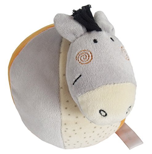 Large ball 12cm diameter;Soft fabric ball suitable from birth;Built in rattle to stimulate babys senses;Playful Tarok horse design with different textures