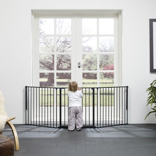 Includes 1x 72cm Gate Panel, 2x 72cm Panels and Wall Mounting Kit;Multiple purposes: Can be used as a safety gate, hearth gate, room divider or play pen;Flexible and easy to fit and One handed operation;Two way opening, Extra wide door section for easy access;Screw fitted on straight and angled walls. Fits openings of 72cm - 223cm