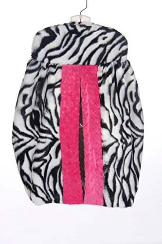 Keep your baby's diapers neat and organized with this front loading zebra minky diaper stacker. The minky zebra diaper stacker's front loading compartment for convenience in trimmed with hot pink minky chenille fabric. Diaper stacker includes hanger and board to be able to hold the diapers for you baby in a safe and straight place. coordinates well with zebra minky bedding set. Fully manufactured in the USA.