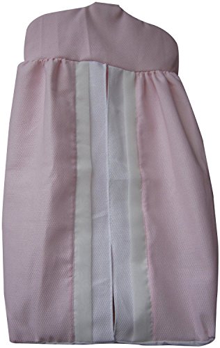 Enhance your childs crib with this pink pique diaper stacker trimmed with voile ruffle and bows.