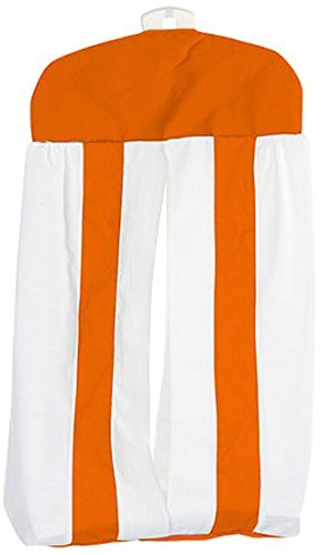 For that handsome and neat look. This modern hotel style diaper stacker in orange is made of a combination of white poly and cotton fabric and orange poly-cotton fabric. Perfect to fit your diapers close to your baby's crib, with a front loading compartment for easy access. Fully manufactured in the USA.