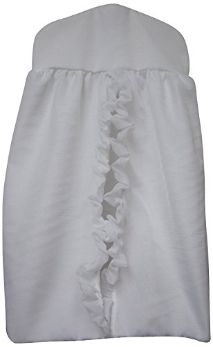 For that handsome and neat look. This layered diaper stacker in white is made of white 100% sheer polyester fabric and trimmed with a white sheer ruffle. Perfect to fit your diapers close to your baby's crib, with a front loading compartment for easy access. Fully manufactured in the USA.