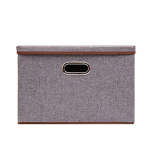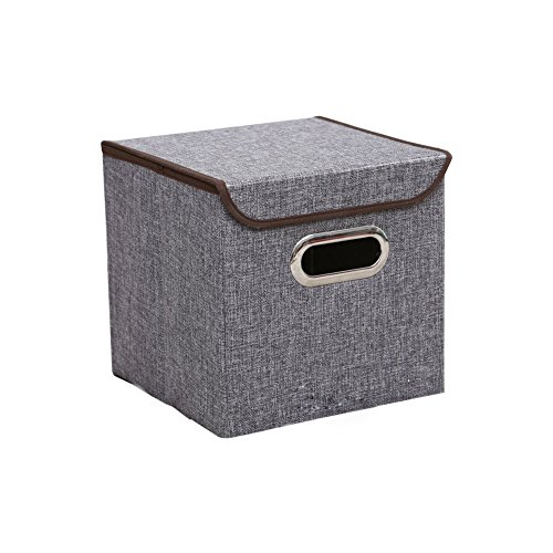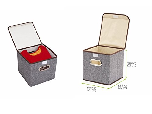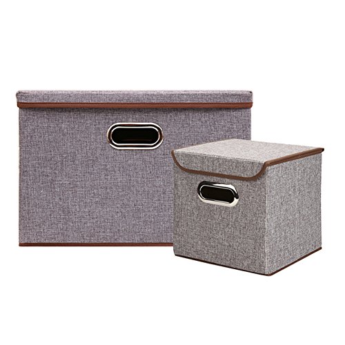 リネン生地折りたたみ式ストレージキューブBinボックスコンテナ蓋Drawers S&L( 9.8 x 9.6 x 9.6,17.7 x 11.8 x 11.8 inches) グレー BIS080901