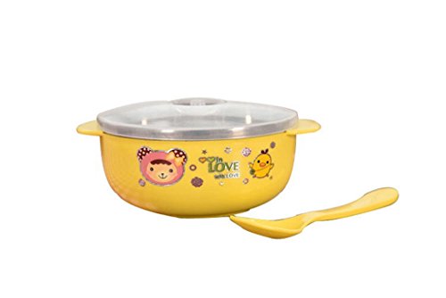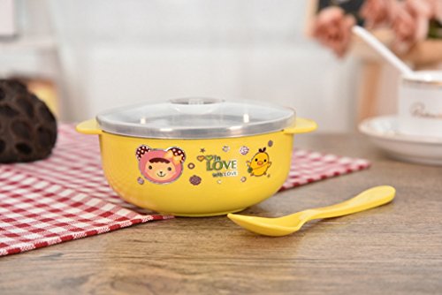 ベビーボウル品質の吸引、ステンレススチールボウルの赤ちゃん、幼児は完璧な食品を保つために暖かい (黄)