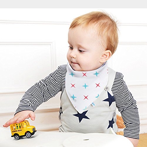 BabyIn BabyDewバンダナビブ、ユニセックス6パック3層柔らかい竹コットン、赤ちゃんのためのスナップ防水フリースよだれかけよだれ、歯が生えると摂食