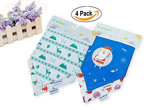 BabyIn 4パックBabyDewバンダナビブ、3層ソフト竹コットン赤ちゃんよだれ、歯が生えると授乳用のスナップ防水フリースよだれかけ