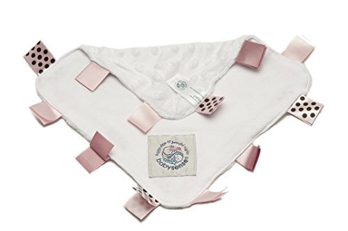 The Baby Sense Taglet is the ultimate security blanket. The soft chenille and smooth satin tags provide just the right soothing touch experience for the baby. When falling asleep the baby will rub the Taglet between the fingers or on the face. These are self-soothing strategies that the baby can use independently at night, which means a good night?s sleep for everyone.The Taglets are made with the softest chenille with raised dots and cotton interlock and three different satin tags on each side of the square.Available in pink, blue and stone.