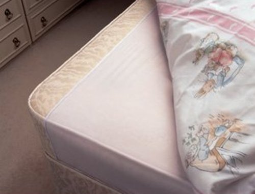 Woodandtoys offer this PVC sheet that will protect the matress from night-time accidents. Complete with securing tapes. 152 x 122cm