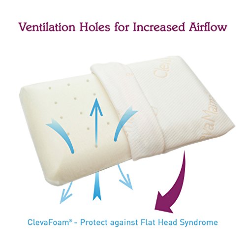 The ClevaFoam? Toddler Pillow offers the optimum in comfort and support for your toddler. Perfect in size and design this pillow helps ensure a peaceful and restful night?s sleep and is just right for your toddler?s first pillow. This is the only pillow that has been scientifically proven, by world renowned university Trinity College Dublin, to protect the round shape of your baby?s soft head and helps reduce the effects of Flat Head Syndrome (Plagiocephaly). The comfortable and luxurious pillow has the added benefit of Airflow? which draws away moisture and increases airflow for the ultimate ?Snug-ability?