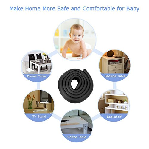 jntworld 4m length table edge Guard baby toddler protector +4 corner (black) extra thick (13 mm) soft Non-toxic and environmentally friendly