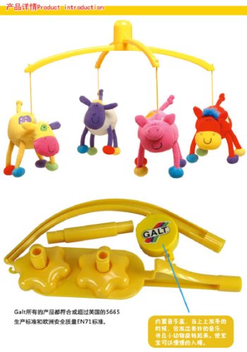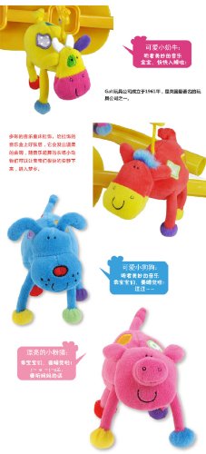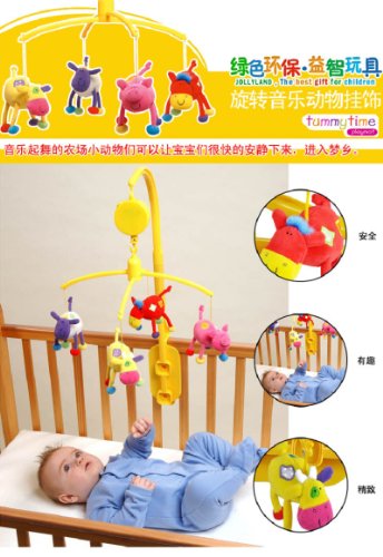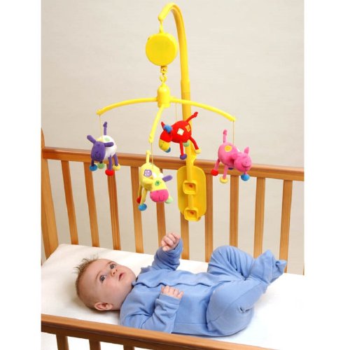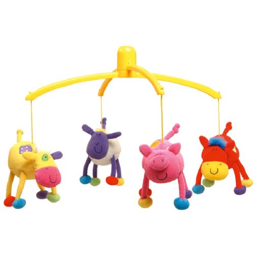 A colourful musical cot mobile. Wind up the music box and it will play a tune to lull baby to sleep as the farm friends gently rotate.