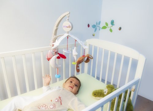 The Babymoov travel cot mobile is suitable for any baby's room thanks to its soft colours. You can also fix it on any travel cot or wooden cot. The foldable arm will enable you to bring it everywhere if you need to travel!
