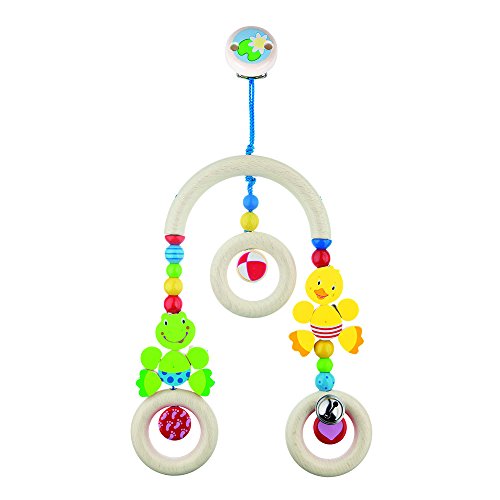 Heimess is designed to stimulate your baby in the early months. It has safe movable parts that allow your baby to explore and stimulates babies overall development. Heimess can be cleaned with warm water. Heimess can be put by babies in their mouths without a second thought. Just as with every other toy, wooden toys do get worn - but loss of colour does not diminish the safety. Non-toxic, saliva resistant colours, nickel compliant metal parts. Heimess wooden toys for baby and infants have been 'made in Germany' for more than 50 years. Heimess baby toys are made entirely of Beech, Maple and Nut Wood.