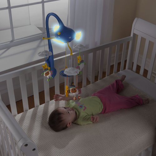 The Shearamy the Sheep Sleep Time Mobile has two modes of play. Baby can watch the counting sheep spin to the soothing sounds in day mode; in night mode, they can watch the soft light glow and hear the lullabies as they fall asleep. The Shearamy the Sheep Sleep Time Mobile also has high-contrast patterns under the clouds, and an integrated self-discovery mirror that will mesmerise baby. The Sleep Time Mobile has two time modes and six melodies.