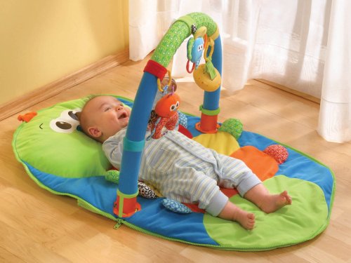 Whether it is playtime or naptime the Infantino Wiggle Worm Gym will keep your baby entertained all day long through a combination of sight, touch and sound. The super soft padded play mat comes with extra support for your baby's head and neck, and includes three detachable toys including, a plush butterfly, a musical flower and dangling peek-a-boo mirror so your baby can check out that adorable smile. The play mat can be easily folded, is lightweight at less than 1kg and a convenient zip-up carrying case makes it the perfect gym for baby on the go! Another great baby gym from the Infantino range.