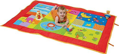 A puffy padded mat with plenty of activities to encourage baby's senses and fine and gross motor development. The various textures and colourful illustrations on the mat will stimulate baby's senses. The musical, bird, jittering cat and chime ball swing from the removable arches providing fun and stimulation for baby.