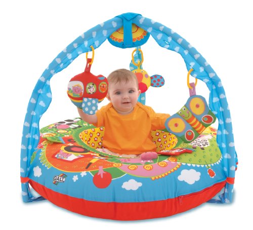 新生児から使えるふわふわプレイジムが新登場!! カラフルなブルーとグリーンにウシさんやヒツジさんなどのプリントが付いて見ているだけでも楽しい! ミラーなど楽しい仕掛けがいっぱいの4つのおもちゃ付き おもちゃは取り外しできるので、手遊びしたり、トイバーに付けることも可能 マットの内側は赤ちゃんを包み込むようになり、赤ちゃんに安心感を与えます カバー、おもちゃは取り外して洗濯可能 *空気入れは付属いたしません :サイズ約<縦90cm×横90cm×高70cm> <対象年齢 0ヶ月~> :組立式 ※並行輸入品、直輸入品の為、説明書など付属品は全て英語表記となります