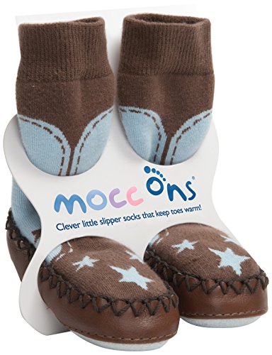 Mocc Ons are the moccasin style slipper socks from the company that brought you Sock ons. Mocc Ons ensure babies and toddlers have warm and comfortable feet throughout the winter season. These are highly practical and easily washable. They are made of a lovely soft and stretchy cotton/polyester mix, stitched to a real suede leather sole, which helps to prevent slipping ensuring that your little one?s toes stay warm and snug all year round!