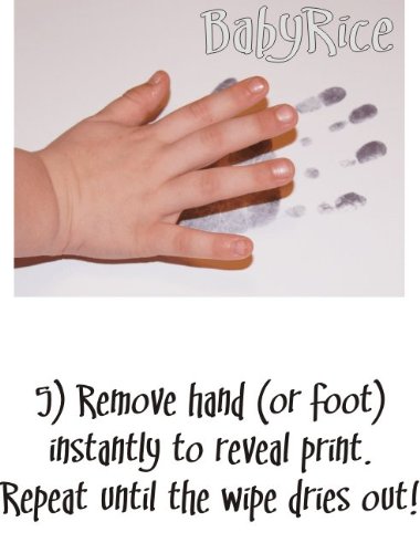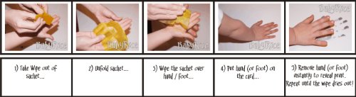 Simply wipe the inkless wipe over baby's hand/foot and gently press onto the cards provided - the prints will magically appear!