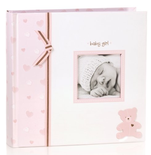 A precious album for all of your precious photos. Fill up the pages with memorable moments of your baby and loved ones. Cover is designed with an adorable pink teddy bear, stylized hearts, ribbon accents, and includes a photo opening to display a cute photo of your baby. With slide-in clear photo pocket pages, creating your perfect album is simple. Each page displays two photos and includes a memo area to write personal details. Holds 200 10 x 15 cm (4 x 6 in) photos. Album measures 24 x 23 cm (9.5 x 9 in).