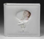 Leatherette Christening Photo Album with Cross and Ribbon