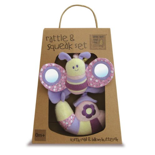 Billowy Butterfly and Softly Snail keep baby entertainedProduct Features:Rattles and squeaks for auditory stimulation Baby-safe mirrors sewn into Billowy's wings for visual stimulation Textured teething rings specially designed for teething babies Goes everywhere with baby! Attaches to cots, pushchairs, car seats and baby gyms Presented in beautiful gift packaging Pack size (cm): 19 L x 7.5 W x 24.5 H