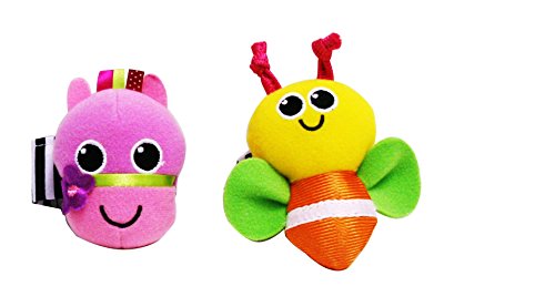 The Sassy Wrist Rattles are bright, the colours are bold which provides visual stimulation. They have a variety of textures which encourage baby to touch and explore. The rich chime sound engages baby's sense of hearing. Baby will have endless fun with these rattles around their wrist, shaking (to make a sound), looking and exploring the textures of the characters. There are an assortment of brightly coloured characters within the pack for baby to enjoy. Please note the pack contains 2 characters. This product is suitable from 0+ months.NOTE:This pack contains 2 characters only with different color variations.