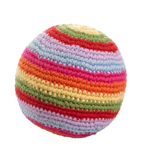 Pebble crochet rattle ball - multi coloured stripes