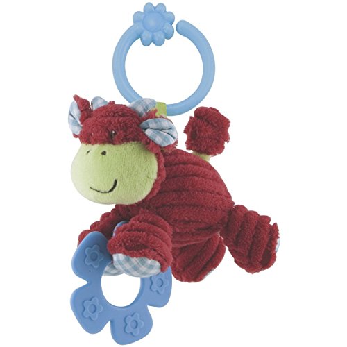 Adorable Clover Cow rattle from the Blossom Farm collection - just pull the cord down then watch and feel as it jiggles back up.