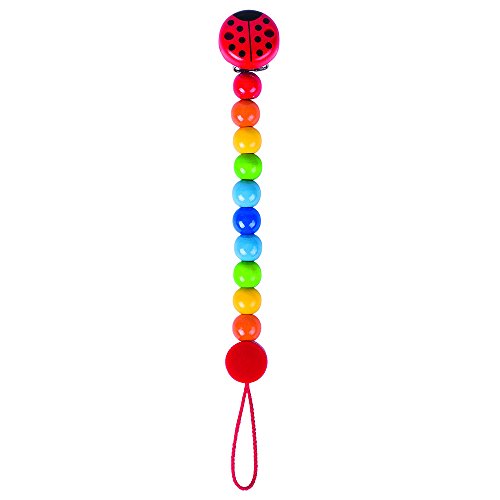 This pretty dummy chain is perfect for ensuring a favourite dummy never gets lost! It attaches to a dummy and clips safely on to clothing so that baby will always have it close by, whilst the tactile and eye-catching pieces will ensure there is plenty to look at and touch.