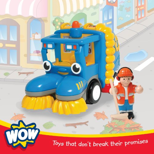 Stanley?s the name and street sweepings the game! The streets of WOW town have been spotless since my introduction a few years back, and they always will be! As you push me along my rubber brushes rotate to sweep up everything in my path! My brilliant driver, Jason, keeps me company on those wet and windy days around town with his great sense of humour and entertaining anecdotes. My roof shows the rubbish being sorted into its individual compartments so you can spin it round to sort it to where it?s meant to be. Sweeping and collection rubbish has never been so much fun! Known as: Stan In a nutshell: An amicable stickler Likes: Neatness and moustaches Dislikes: Clutter and cold weather Likes to hang with: Fred, Tim and SidneyWOW Toys don't require any batteries and still have amazing functions and features to discover. WOW only use high grade materials and every toy is rigorously tested to make sure it is durable and safe.